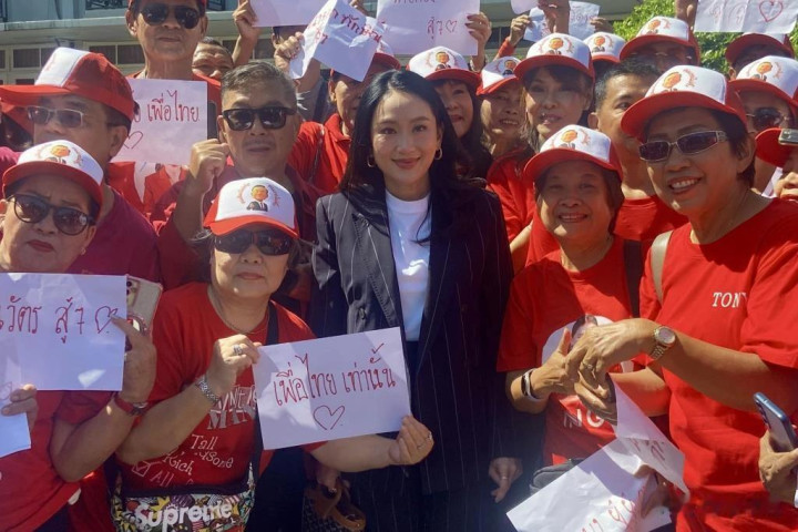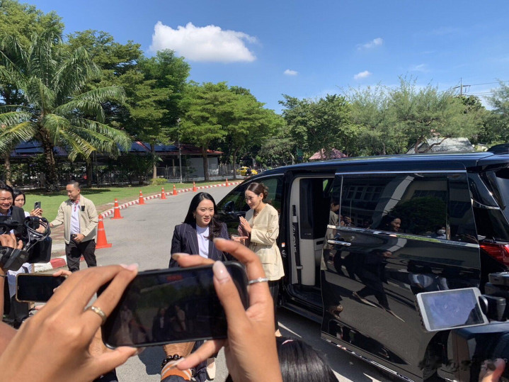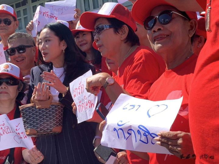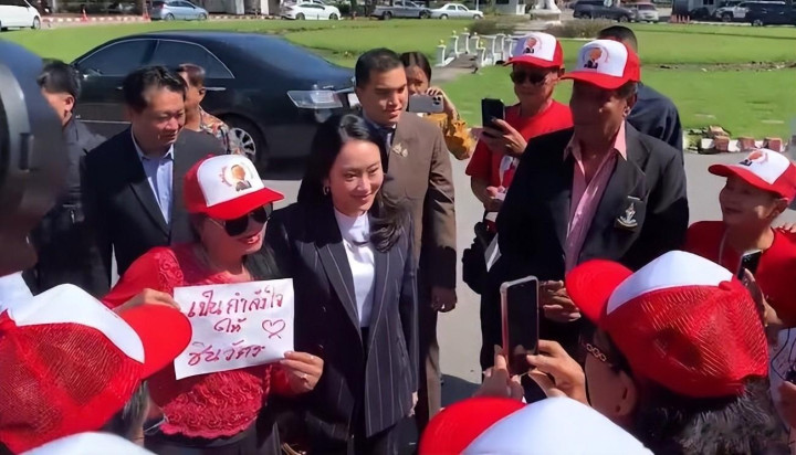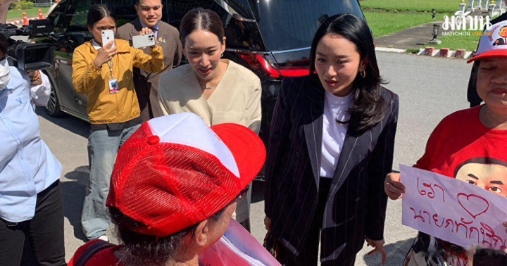 探视前,佩通坦与萍通塔还同等待在监狱前的红衫军成员亲切合影,部分红衫军成员还手持“钦那瓦加油”、“只要为泰党”、“我们爱他信”等字样的白纸,声援他信家族。结束探监后,佩通坦接受了记者采访。